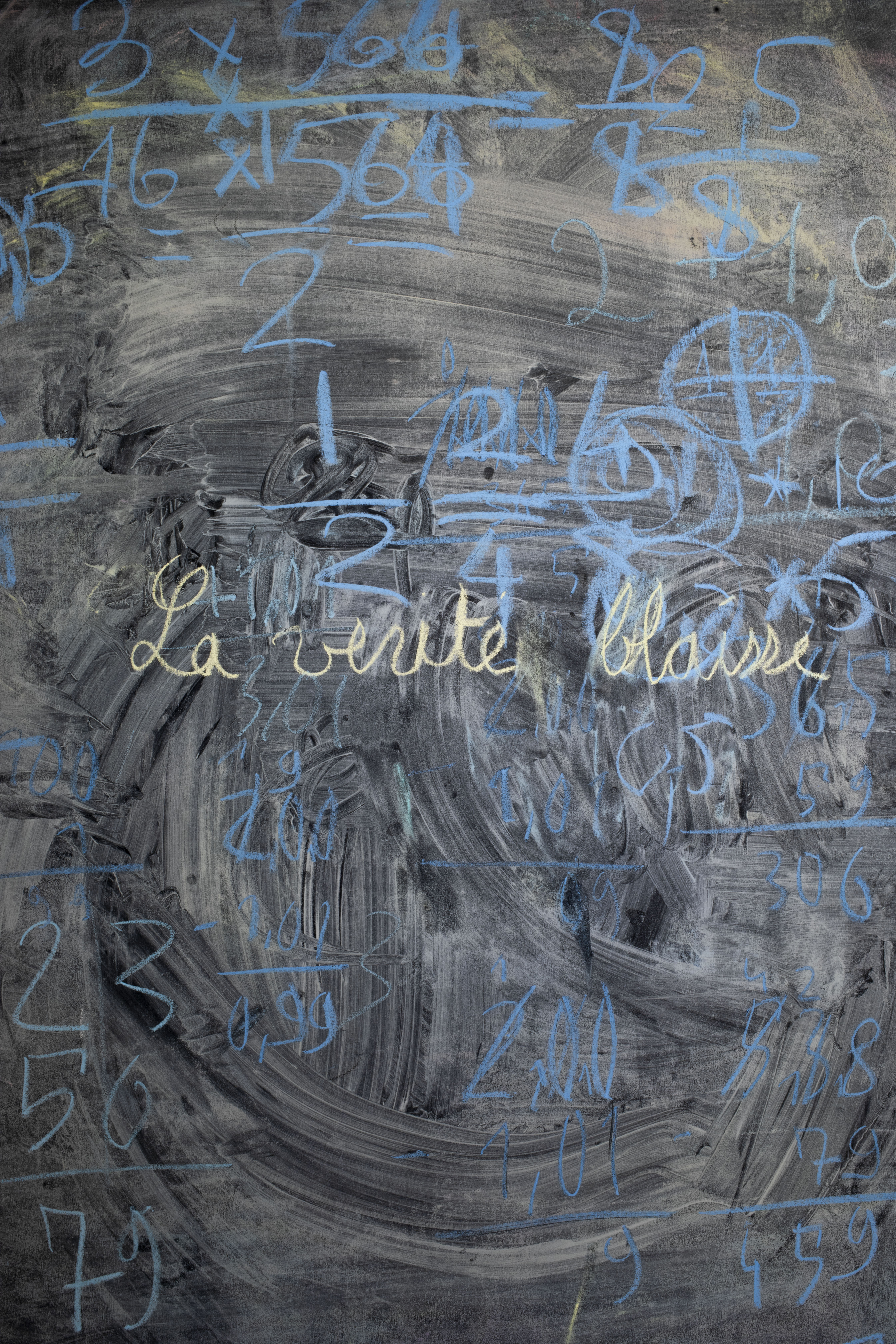 It is not by chance, then, that these grains are visualised via the series Blackboards (2016), where sediments of slate—formed by the pressure of time weighing down on clay, volcanic ash, and shale—make the board we now write on with chalk. And that very chalk used by Ilizirov is itself the product of sedimentary carbonate rock, made from the tiny calcified remains of plankton over 100 million years ago. The apparent randomness of how dead plankton now aids knowledge, and even games (Chess Game with Pim Blokker, 2013), is a chaotic reminder of the insane causality the universe is capable of. A testament to impermanence, the shape-shifting of nature, and the volatility of our belief systems—which can swiftly and easily be swiped away from blackboards, forever lost in the aeons of time, if not captured by Ilizirov’s lens.